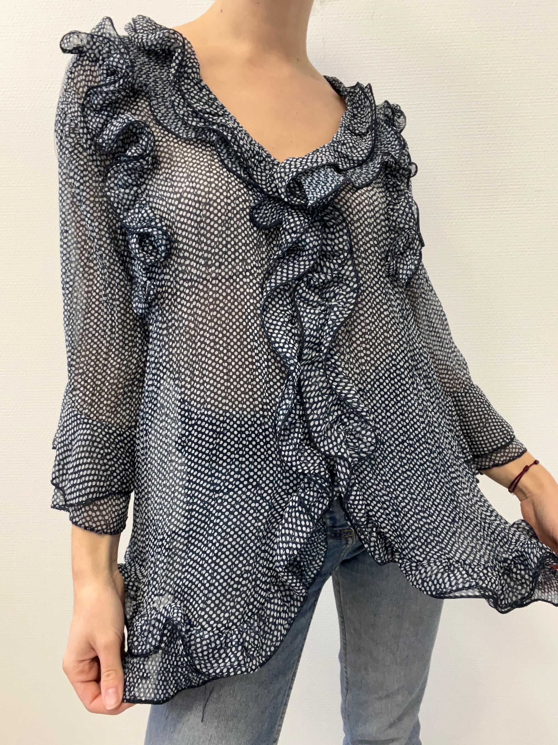 La blouse à volants est un incontournable pour votre garde-robe. Fabriquée à partir d'un tissu léger et ornée de volants délicats, elle est confortable et élégante. Parfaite pour toutes les occasions, cette blouse apportera une touche de féminité à vos tenues.
