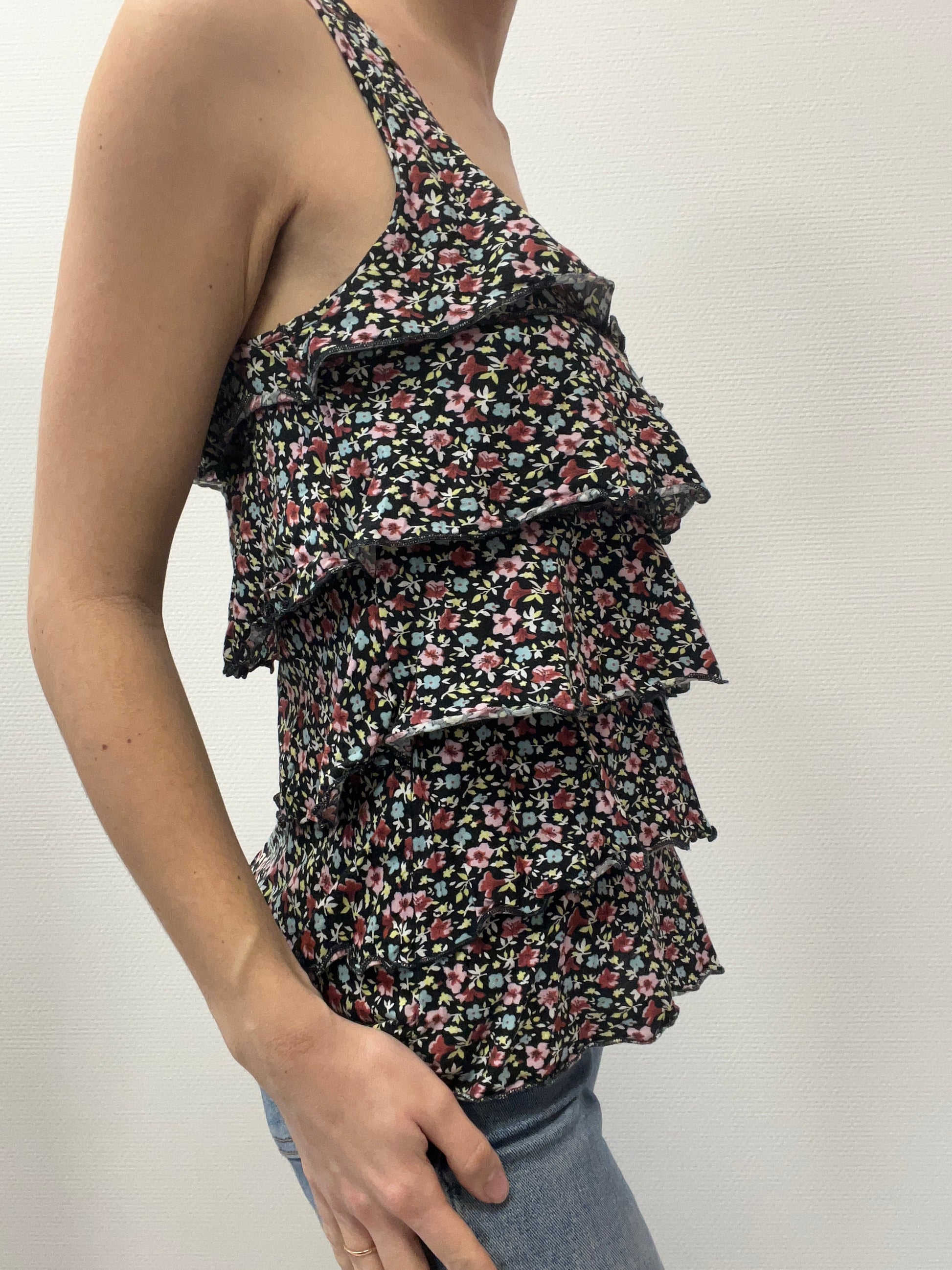 Embellissez votre garde-robe d'été avec cet élégant débardeur à volants fleuris. Ses volants apportent une touche de féminité et de légèreté à votre tenue.