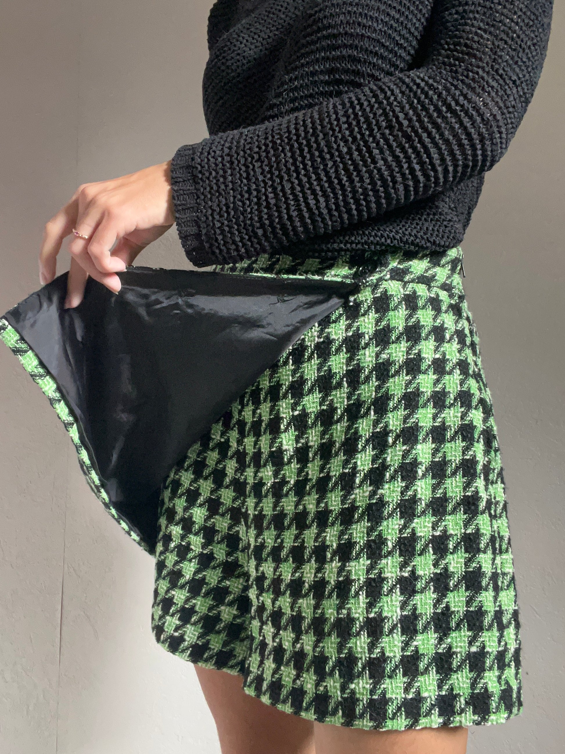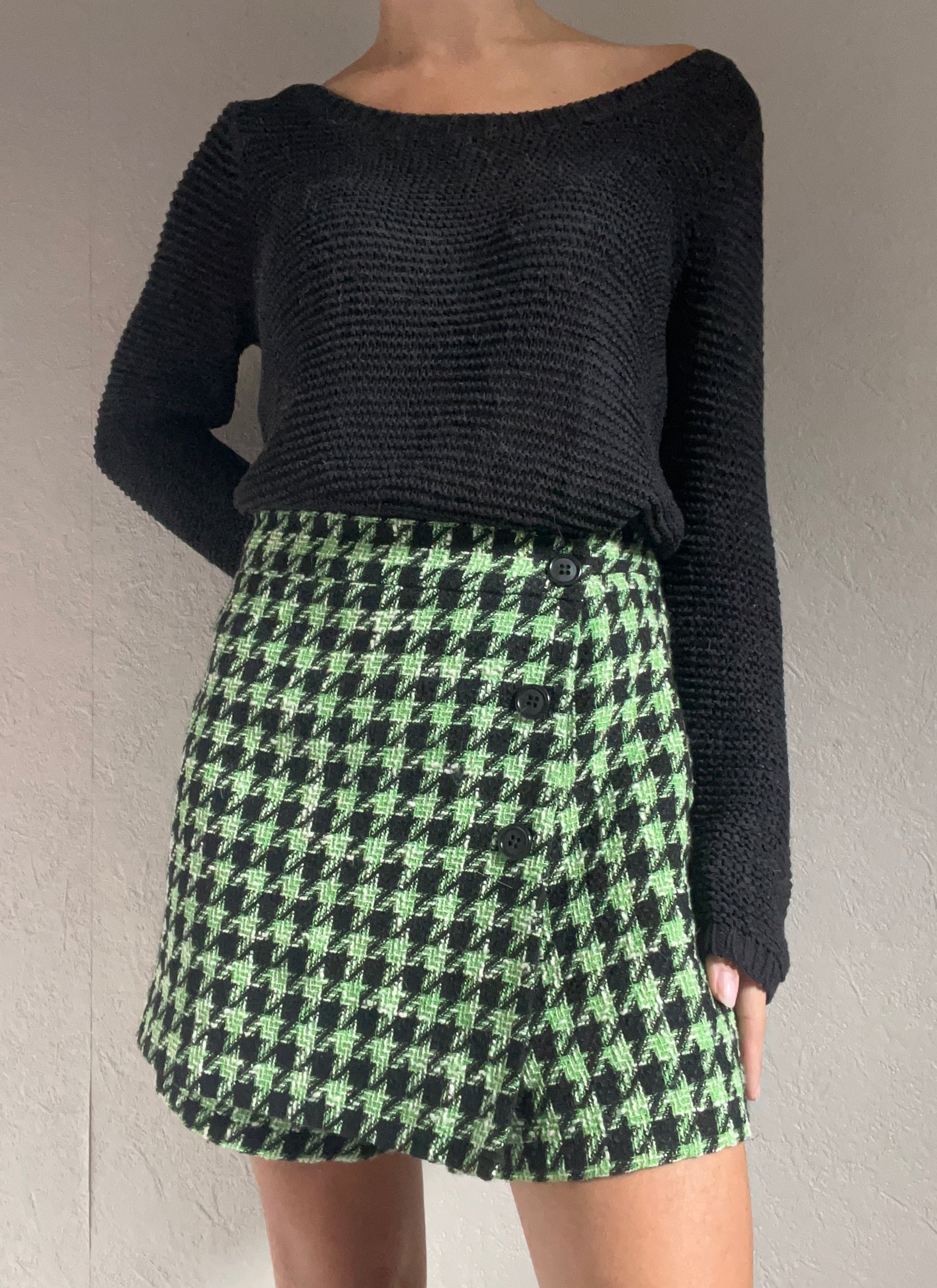 Ravivez votre garde-robe avec cette jupe-short imprimée en pied de poule. Cette pièce polyvalente pour la saison automne-hiver est parfaite avec des collants pour un look à la fois chic et chaud.