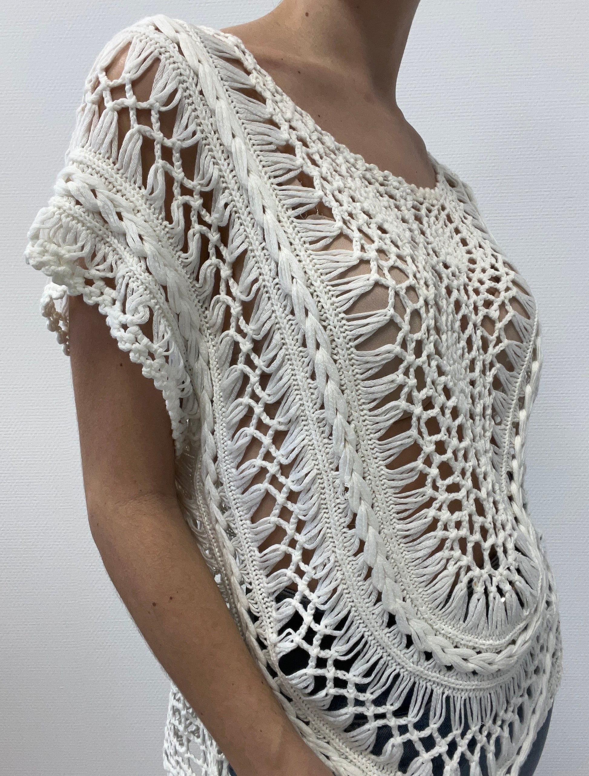 Découvrez le style bohème avec ce top ajouré en crochet ! Parfait pour les chaudes journées d'été, ce top ajouré apporte la touche parfaite de légèreté et de décontraction à votre tenue.